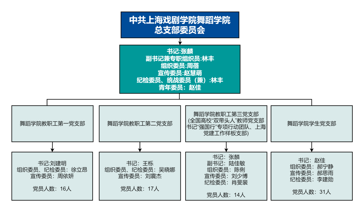 上海戏剧学院舞蹈学院党总支在学校党委的坚强领导下,以习近平新时代中国特色社会主义思想为指导,深入学习贯彻党的二十大、二十届三中全会精神和学校第三次党代会精神,主动担负“把方向、促发展、保稳定、抓落实”的政治责任,将党的建设与舞蹈教育事业的发展相结合,与学院各项业务工作深度融合,持续推进师德师风及课程思政建设,始终坚持以高质量党建引领保障学院各项事业高质量发展。 党总支下设3个教职工党支部,1个学生党支部,现有教师党员49人,学生党员29人。凝聚师生奋发有为,持续激发支部战斗堡垒作用和党员先锋模范作用,获评上海市教卫工作党委“先进基层党组织”等荣誉,入选“上海党建工作样板支部”培育创建单位、全国高校“双带头人”教师党支部书记“强国行”专项行动团队。党员教师积极投入学院改革发展等各项事业中,在学科建设、教育教学、人才培养、创作展演、国际交流等各方面担当作为,充分发挥模范带头作用。 在党总支的带领下,在全体党员和教职工的共同努力下,舞蹈学院先后被授予全国教育系统先进集体、上海市劳动模范集体、上海市教育系统三八红旗集体、全国五一巾帼标兵岗等荣誉,这些荣誉是肯定,更是激励。党总支将带领全院师生员工,以永不懈怠的精神状态和一往无前的奋进姿态,为学院的建设和发展舞出更为华美的篇章,为中国高等舞蹈教育事业的蓬勃发展贡献力量! |