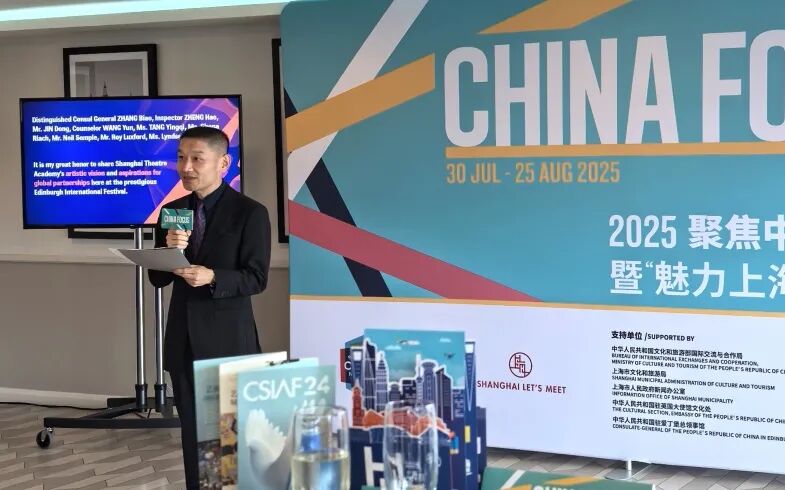 当地时间8月11日下午, 2025 爱丁堡艺术节 “聚焦中国”暨“魅力上海”推介会在爱丁堡成功举办。中国文化和旅游部国际交流与合作局、中国驻英国大使馆、中国驻爱丁堡总领事馆、上海市文化和旅游局等相关机构负责人及海内外院团、合作机构、媒体及艺术家代表等百余人出席活动。上海戏剧学院副院长聂伟教授以“艺术创演共生共兴,共建共联全球网络”为题进行了“上戏发布”,分享了建校80年来,上戏在人才培养和艺术创作当中不断推动全球戏剧艺术教育实践与创新的历程和成果。从莎剧的东方诠释到AI戏剧的探索,上戏始终以经典诠释与传统转译为纽带,构建文明对话的共生空间。如今,作为国际剧协核心伙伴与亚太戏剧院校联盟主席单位,上戏通过 “网络共联” 三大节点持续推动中国艺术、文化、教育走向世界,以科艺融合打开未来戏剧新可能。聂伟副院长代表上戏向全球艺术家发出邀约:无论创意源自哪里,上戏共生、共兴、共建、共联的艺术创演网络都愿意通力协作、全力赋能。