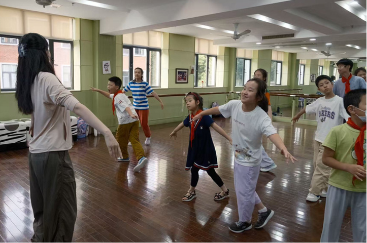我和我的学生们一直践行着“为人民而舞”的信念。我们既亮相于世博会、亚运会等重大舞台,也坚持走进社区、学校开展社会服务。上海市盲童学校和第四聋校的志愿服务经历尤其令我们难忘。盲童学校的孩子们看不见我们,但我们能用舞蹈让他们“看见”。我们教孩子们用手势触摸空气的流动,用舞姿造型感受音乐的节奏,用身体感知艺术的世界。一位学生回来后跟我说:“老师,我以前只看得见舞台的追光灯,今天当我看见孩子们灿烂的笑容时,我发现我们还能成为别人心里的一束光。以后这样的活动我还想参与。”